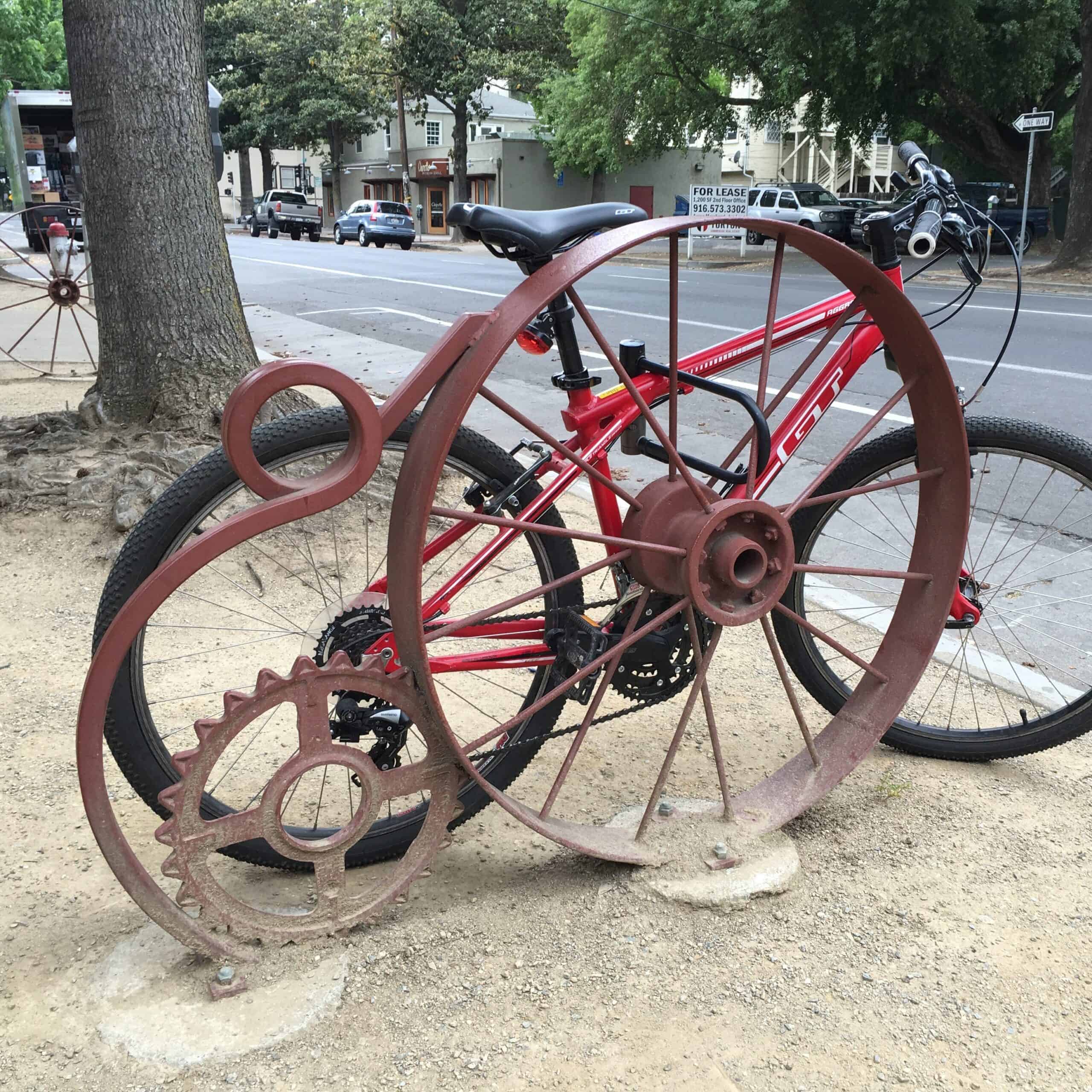 Many patrons of businesses in the Handle arrive on their bicycles. To accommodate these customers, the Handle has added bike racks and bike corrals.